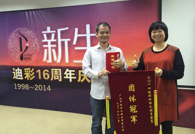 生命在于運(yùn)動(dòng),體育洋溢青春。在這秋風(fēng)送爽,丹桂飄香時(shí)節(jié),讓我們備受矚目的“2014迪彩杯羽毛球爭霸賽”也圓滿的畫上了句號(hào)。在此次賽事中分別設(shè)立了冠亞季(團(tuán)體獎(jiǎng)、男子單打、女子單打)三大獎(jiǎng)項(xiàng),頒獎(jiǎng)典禮于11月3日在公司總部培訓(xùn)室舉行,頒獎(jiǎng)嘉賓由許桂萍董事長、曾佑春工會(huì)主席擔(dān)任。