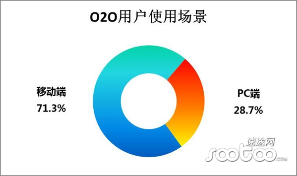 在O2O市場用戶群體中,使用移動端的用戶占到了71.3%,PC端的用戶占比僅28.7%。目前移動互聯(lián)網(wǎng)的發(fā)展已經(jīng)成為大勢所趨,不少O2O商家和平臺也紛紛啟動通過手機支付、微信支付、掃碼支付等等可以享受優(yōu)惠的活動,以此來增加移動端用戶的數(shù)量。隨著移動互聯(lián)網(wǎng)背景下的用戶定位、個性化推送等一系列以方便用戶為前提的功能的普及,以及移動端設(shè)備的進化,移動端用戶的占比將會進一步提高,甚至完全占據(jù)O2O用戶市場。