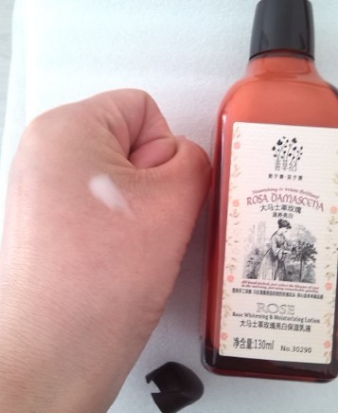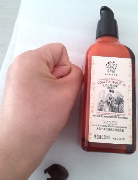 按壓出來一點之后可以看出.乳液的質(zhì)地非常的清柔,無粘膩的現(xiàn)像.一股濃濃的玫瑰的香味,是我最喜歡的,而且持久度也是相當(dāng)?shù)牟诲e的,聞著就很舒服呢.